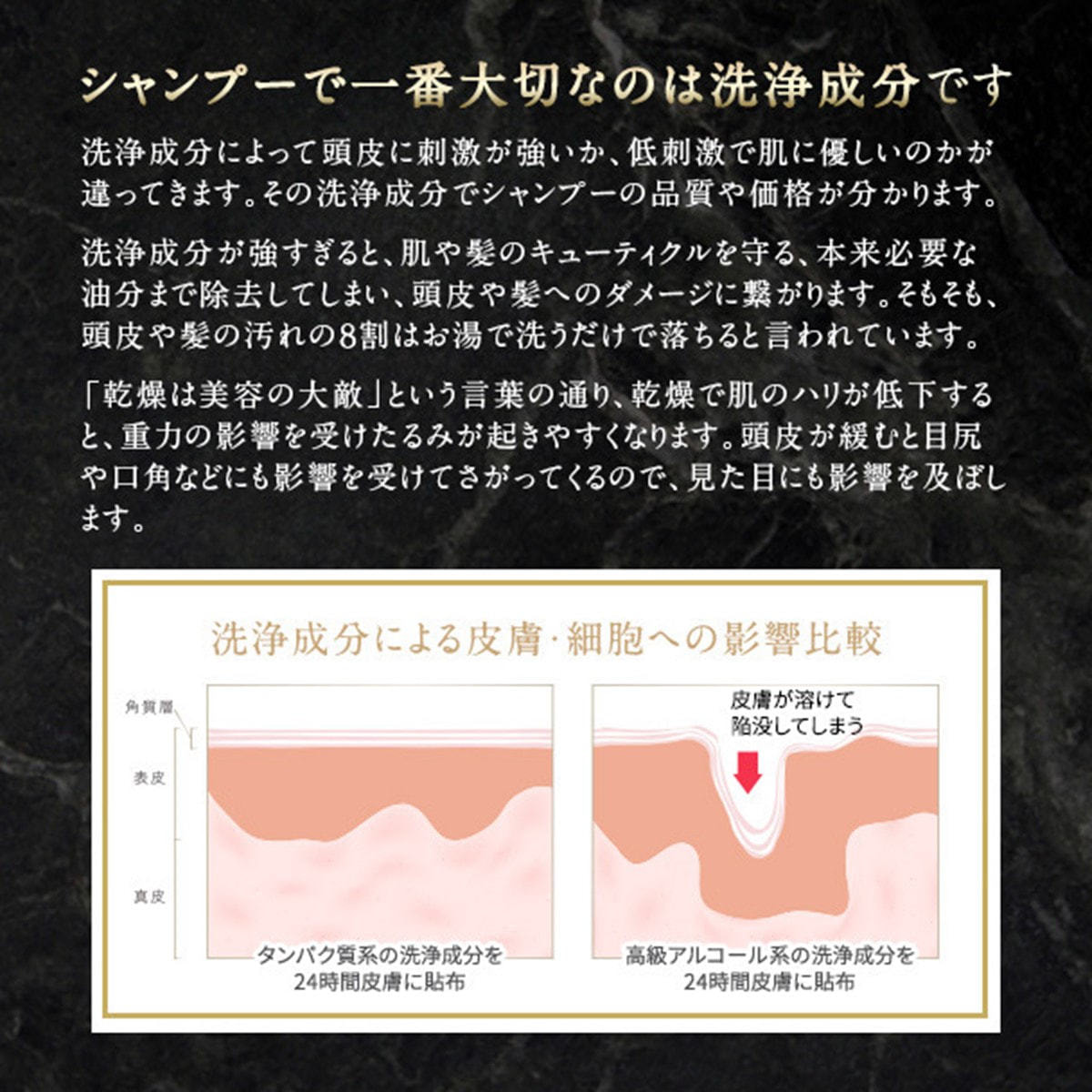 エイジングサインに特化した、髪と頭皮をダブルでケアする美容液シャンプー。